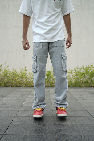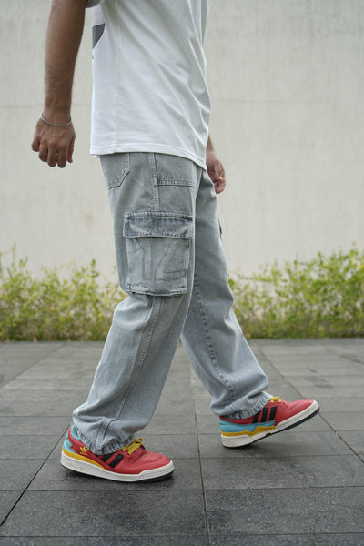 STONE WASH NON STRETCH COTTON DENIM CARGO  WASH CARE ! DO NOT IRON ON THE PRINT