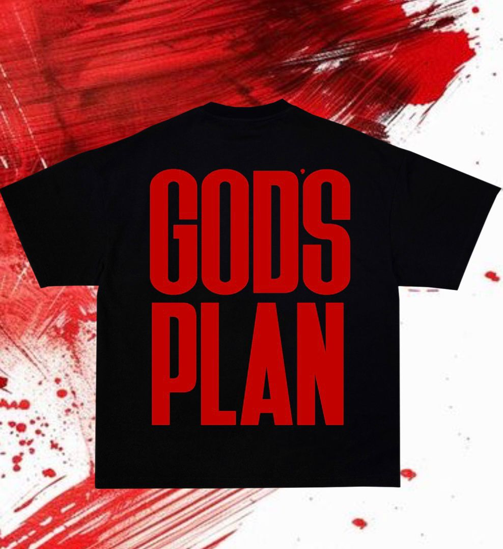 This black t-shirt, crafted from durable 260 gsm fabric, features the best-selling "Gods Plan" design in striking red print. Its premium weight ensures lasting comfort and resilience, making it ideal for everyday wear while showcasing a bold, minimalist style. Perfect for those who appreciate quality and iconic design.
