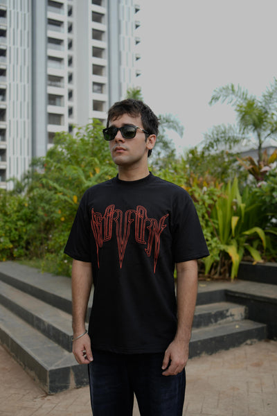 Introducing our branding in black (red) t-shirt. Made of 100% cotton, this classic black tee features our bold red branding. A perfect choice for both comfort and style, elevate your wardrobe with our iconic design.