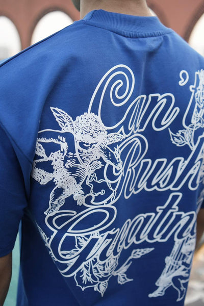 Crafted with comfort and style in mind, our CANT RUSH GREATNESS TSHIRT is made with royal blue 260 gsm material and features a bold and inspiring "never stop dreaming" print on the back. Perfect for those who never settle for less and always strive for greatness.